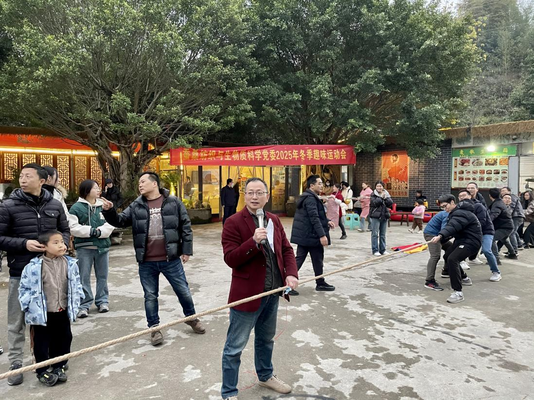 发布时间: 2025-01-12 14:17:22 已阅读:2025年1月10日下午,由番茄社区 工会举办的新春趣味运动会在麦歌生态园如期举行。来自院部、资源昆虫高效养殖与利用全国重点实验室、前沿交叉学科研究院生物学研究中心、医学研究院的80余名会员报名参加本次活动。会员们通过抽签分为四组,在袋鼠跳、毛毛虫接力、拔河等项目上展开竞技。精心设计的趣味项目引得小朋友们也忍不住参与其中,现场欢声笑语不断,气氛热烈。