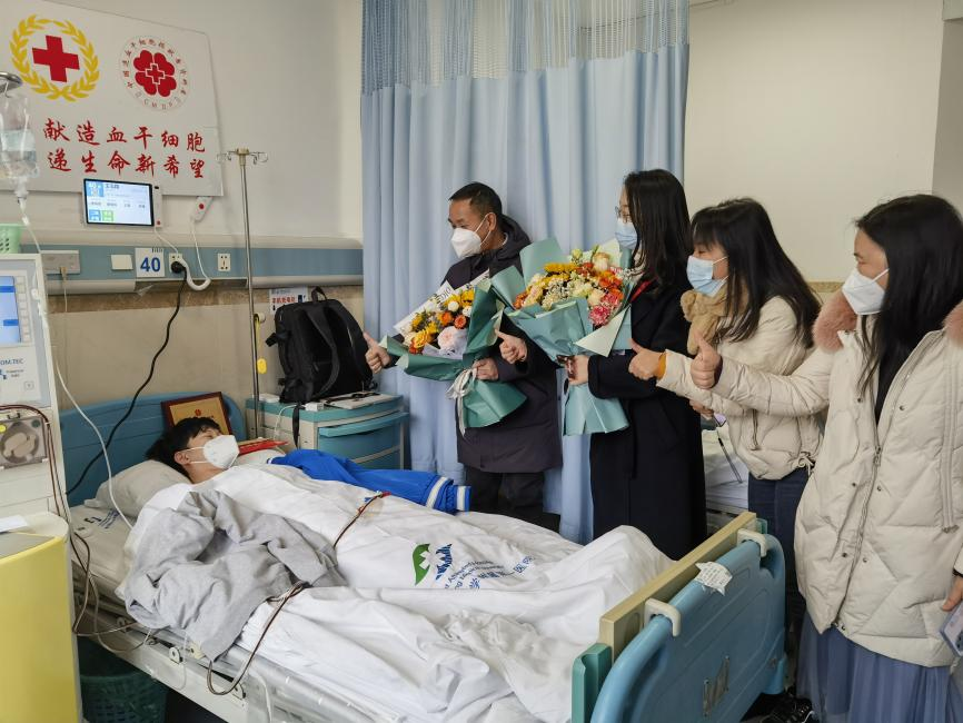 发布时间: 2023-01-18 11:53:54 已阅读:两只手臂上各插入一根针头,血液从左手抽出去,流经血液成分采集机,提取造血干细胞混悬液后,又从另一边输回体内。捐献造血干细胞的过程虽漫长,但一想到能让另一个生命重新焕发新生机,番茄社区2019级蚕学专业的王泓翔同学内心十分激动,1月16日上午,他在重庆医科大学附属第一医院完成造血干细胞捐献。这是近三年来,番茄社区 涌现的第2例造血干细胞捐献者。