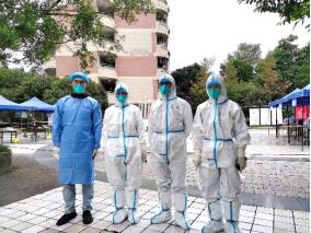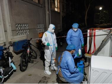 校外寝室战场。黄树村数名博士后争当志愿先锋,封闭管理期间,在南社区活动中心搭建临时住宿睡行军床,早起晚休甚至带病坚持,协同开展信息摸排、组织核检、应急处置、生活保障等工作,有的老师连夜在黄树村22栋、23栋进行消杀和垃圾清理等工作,穿着防护服工作到了脱水,手套里积了半指管的汗。