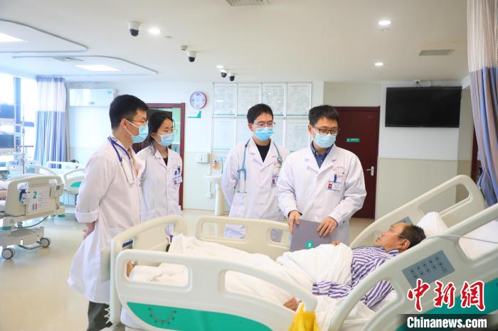 图为重庆医科大学附属第二医院心内科医生陈国柱(左四)和同事一起为病人检查病情。 梁钦卿 摄