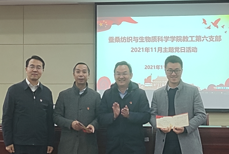讨论交流之后,王部长作了指导讲话。王部长指出,本支部所在专业师资来自全国纺织轻化界主要高校,队伍学缘结构是很好的优势和特色,希望支部同志集中优势力量,走特色和重点突破的道路,团结奋进,把专业越办越红火。王部长还要求,教师要发扬良好师德师风,坚守学术道德底线。