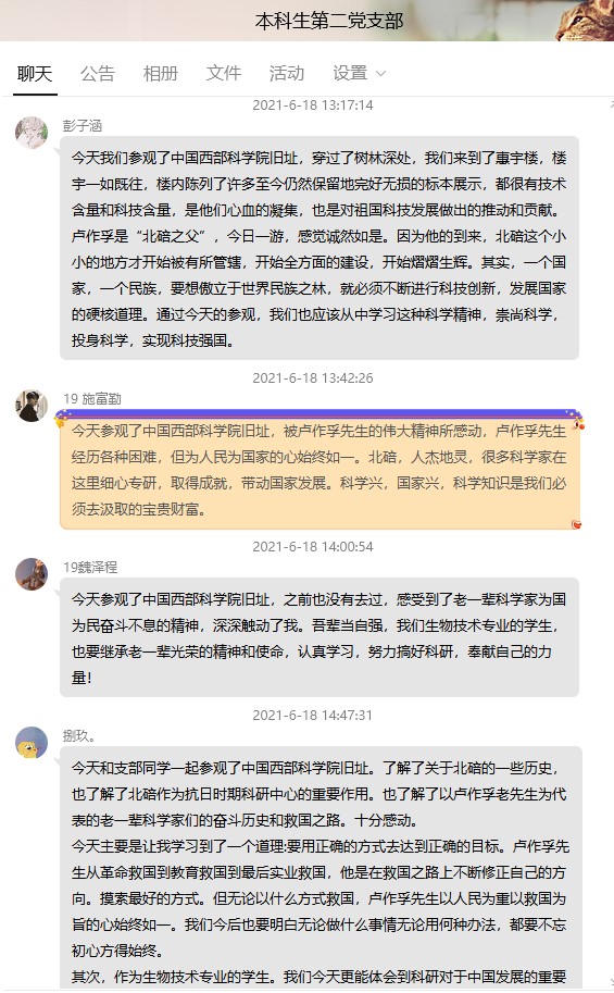 参观之后,同志们在惠宇楼内为孙小桐等3位党员过了政治生日,赠送了生日贺卡和《袁隆平传》书籍。随后,在支部书记朱高峰的主持下,同志们就本次参观学习展开了积极的线上交流和讨论,纷纷发表自己的所思所感,大家对求真务实、科教兴国等方面都有了更加深刻的认识。