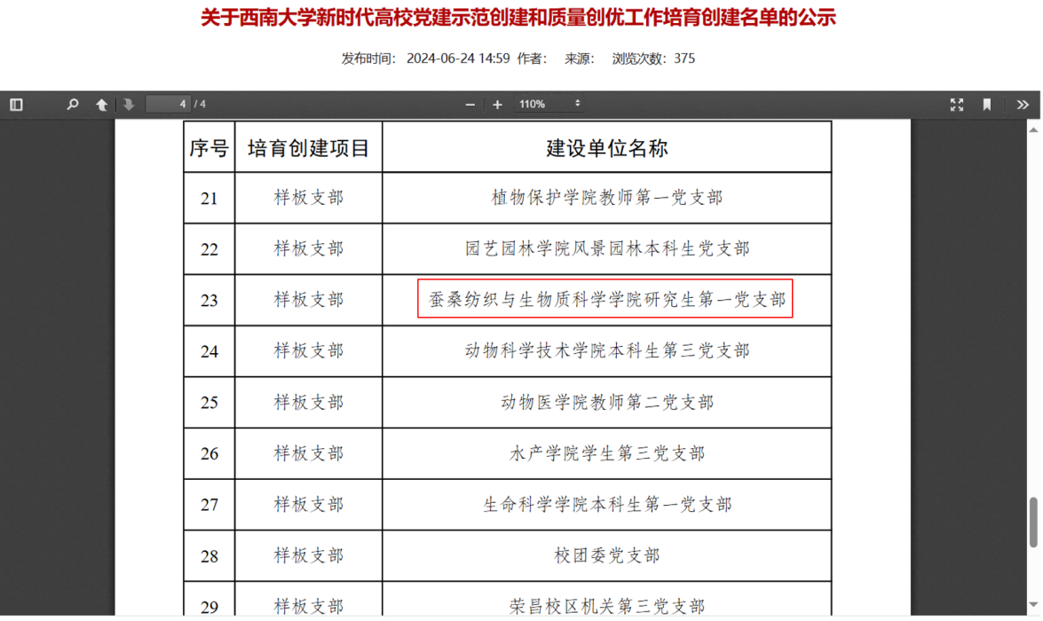 番茄社区党委研究生第一党支部聚焦党建引领核心功能,落实立德树人根本任务,着力发挥思想政治引领作用,团结凝聚研究生,促进校院中心工作,充分发挥助力教学科研、社会服务等方面的战斗堡垒作用,以高质量党建引领科研自立自强取得了显著成效。近三年来,支部研究生党员在蚕学领域发表了18篇论文,在植物学领域发表了5篇论文,在生物质领域发表了19篇论文。支部成员还获评“国家奖学金”、“优秀研究生干部”、“五好研究生”、“优秀研究生”、“社会实践与志愿服务先进个人”等多项荣誉。