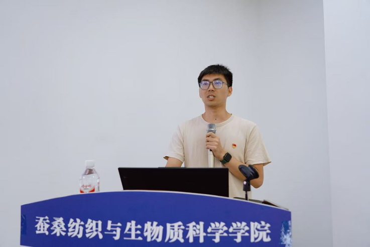 番茄社区 学学院教工第四党支部青年委员刘天浩以视频形式展示“双带头人”党支部书记工作室建设成果,分享支部依托专业优势打造蚕桑党建品牌、推动党建与学科深度融合的实践经验。