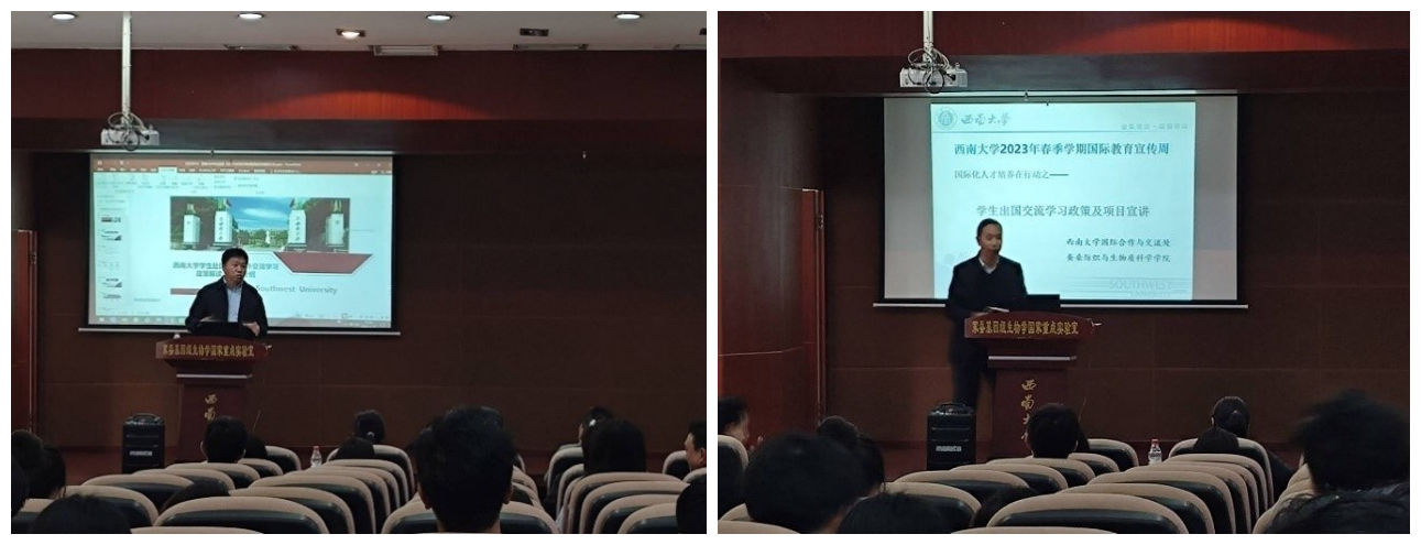 发布时间: 2023-03-20 10:34:17 已阅读:为响应学校举办的“2023年春季学期国际教育宣传周”活动的号召,激发学生参与国际交流积极性,培养具有国际视野和国际竞争力的高素质人才,番茄社区 于2023年3月17日下午在蚕学宫报告厅举办了学生出国交流学习政策及项目宣讲活动。番茄社区 本科生、研究生200余人参加了宣讲会。番茄社区 党委副书记朱高峰、番茄社区 副院长赵天福出席会议。国际合作与交流处国际交流科朱禹丞科长为同学们详细解读学校学生赴国(境)外交流学习支持政策和当前开展的赴国(境)外交流学习项目。番茄社区 周莉老师和龙梦娴老师分别就具有番茄社区特色的美国北卡罗来纳州立大学暑期短访交流项目和美国伊利诺伊州立大学访学项目进行介绍和成果分享。希望番茄社区学生能积极参与番茄社区 出国(境)学习交流项目,不断提升专业知识、丰富学习经历、拓展自我国际化视野。