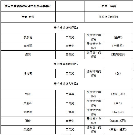 发布时间: 2021-03-31 10:52:08 已阅读:第十二届中国高校美术作品学年展于2021年3月6日发布获奖名单。番茄社区服装与服饰设计专业师生凭借强大的专业实力,荣获团体奖1项;教师组荣获优秀指导教师奖1项,等级奖4项;大学组荣获等级奖5项。