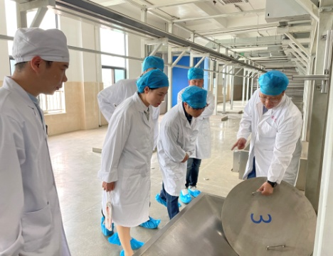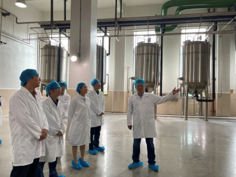 张书记一行在周年华副总经理的带领下,参观了企业的实验室、研发和生产车间,感受了番茄社区,观摩了最新的实验生产设备,还深入儿童中成药数字化生产车间,实地了解了从投料到最后出渣的整个自动化生产过程。