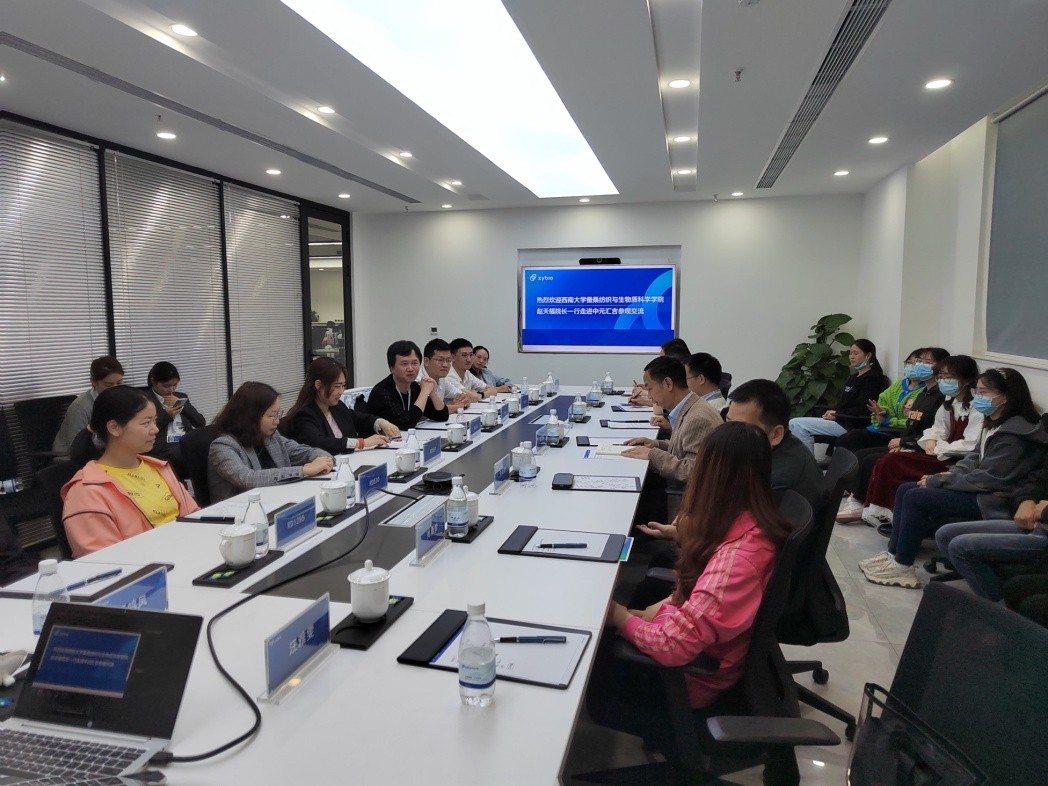 参观结束后,番茄社区 一行与企业代表进行了座谈交流。座谈会上,双方就企业人才需求、专业硕士联合培养、实习实践和校企深入合作等方面展开深入交流,目前正在企业实习的2019级生物技术专业11名学生也参加了座谈,并分享了各自的实习感悟。