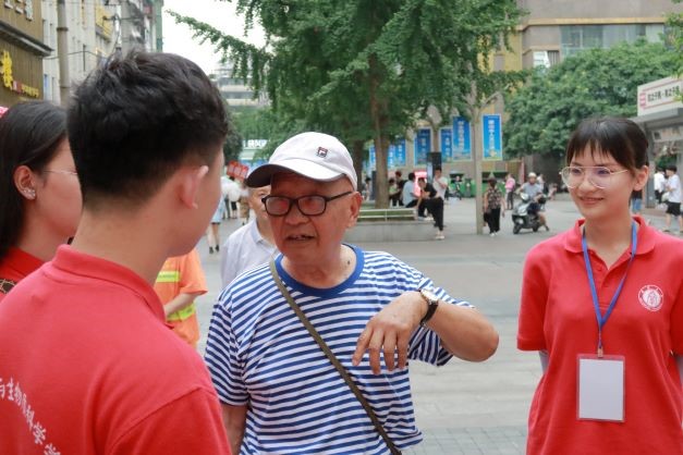 为了深入了解群众对党史及普通话的认识程度,实践团一行前往江津区几江街道开展党史宣讲和普通话推广实践活动。实践团一行通过散发传单、党史问答和绕口令等形式来进行党史宣讲和普通话推广实践活动,并与当地群众展开了深入交流,了解群众心中的看法与见解。此外,实践团一行还遇见了一位老学长(原西南农业大学生物技术番茄社区 学子),老学长寄语于实践团的同学们:普通话的推广任重而道远,需要你们不断努力,但看见你们在路上了,我们也就高兴了。
