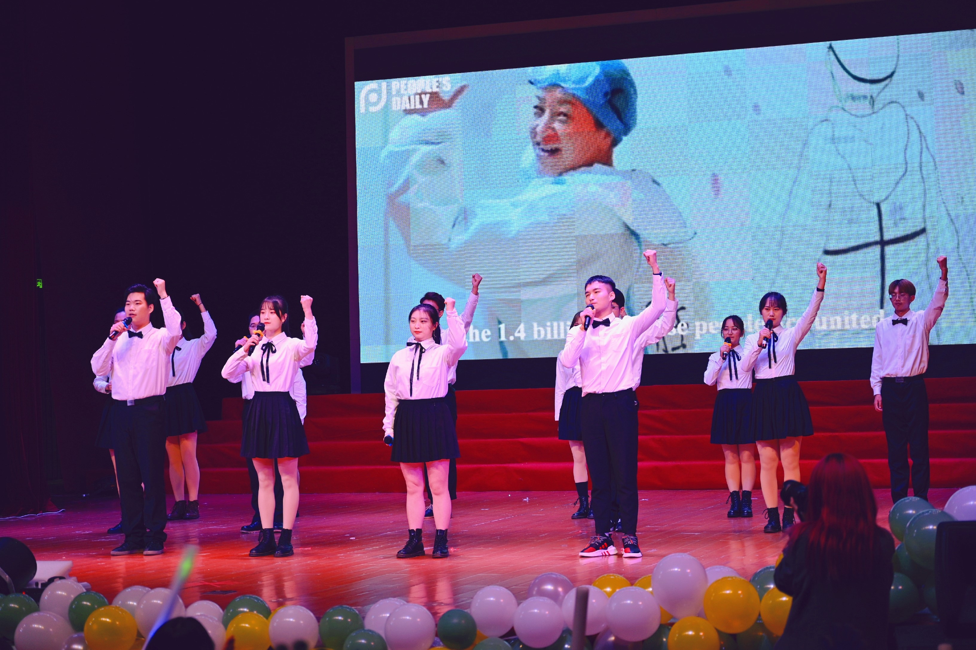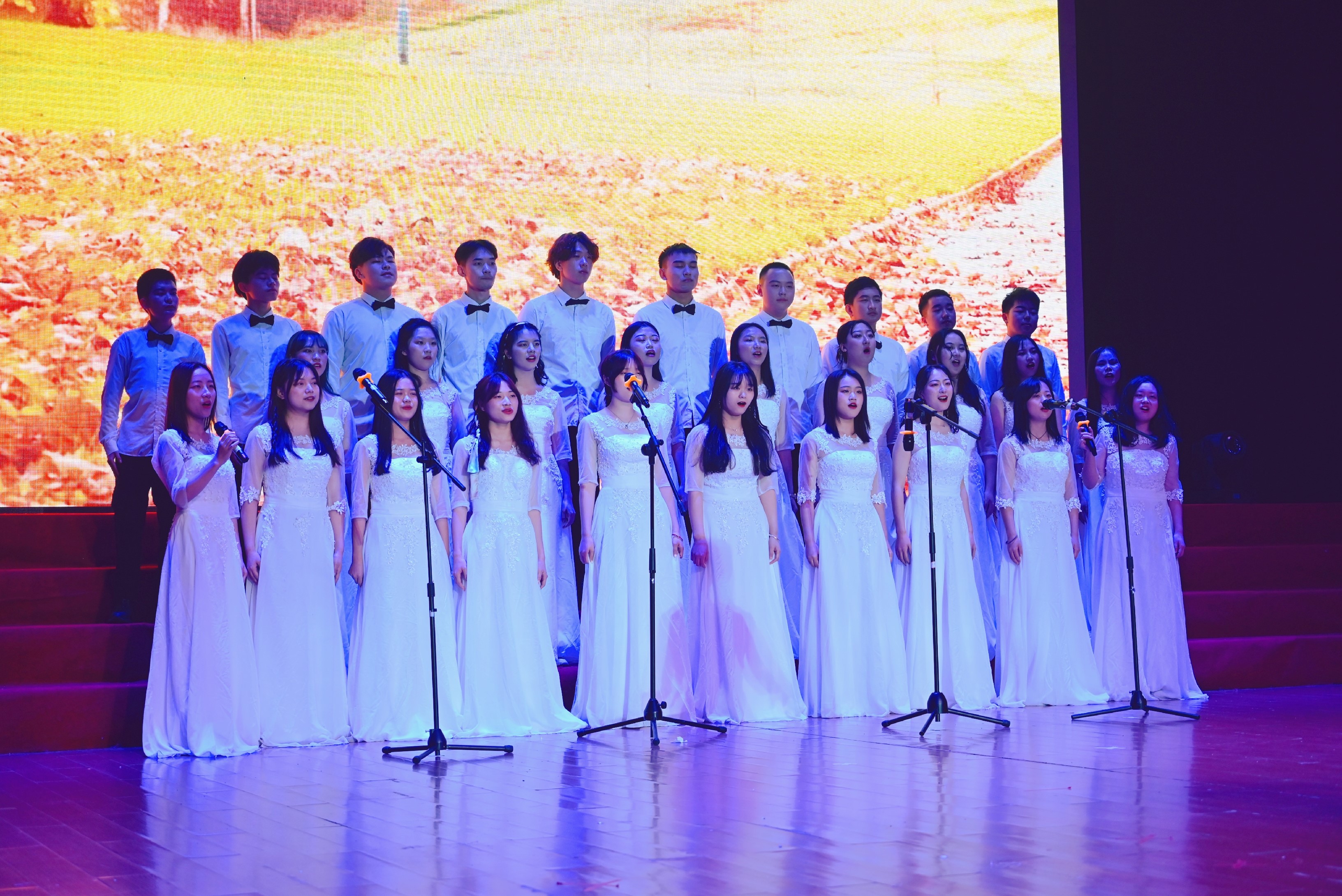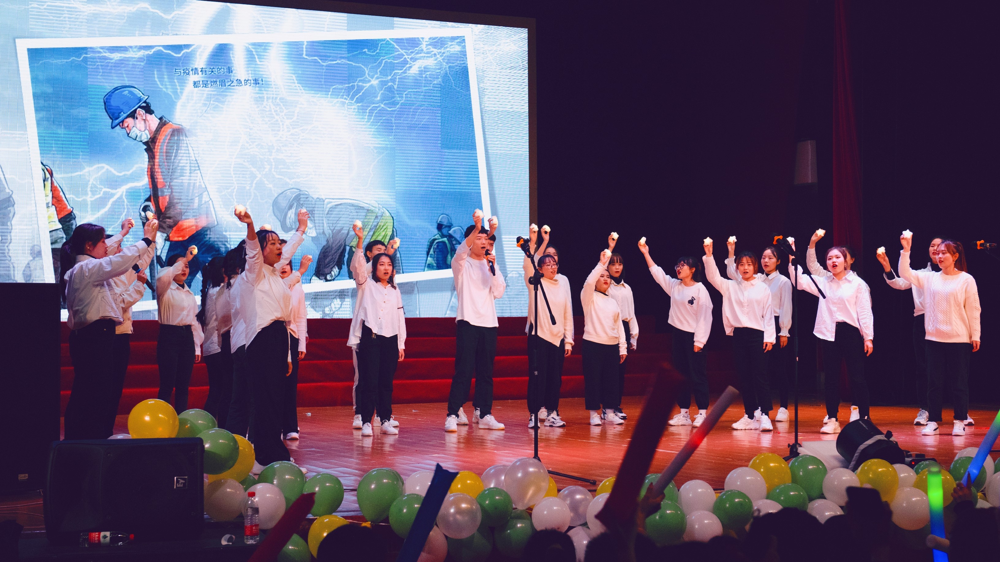 热辣的舞蹈《DUN DUN》活力四射,声音大秀《光影留声》令人着迷,合唱表演《我喜欢》则在温柔的曲调中慢慢讲述令人欢喜的故事。新时代丝路驼铃党员引航队的同学们在朗诵节目《抗疫》中,用铿锵之音颂扬抗疫战士的奉献与功绩,以担当使命回应时代召唤。而一场令人尖叫的《耶斯莫拉》动感舞蹈更是把全场气氛推向高潮。服装走秀《时光漫步》节目,同学们原创设计,自己展示,既展现了番茄社区学子良好的专业素养,又展示了大家优良的综合能力。研究生同学带来的合唱《夜空中最亮的星》,让我们坚信踮起脚尖,梦就不远。