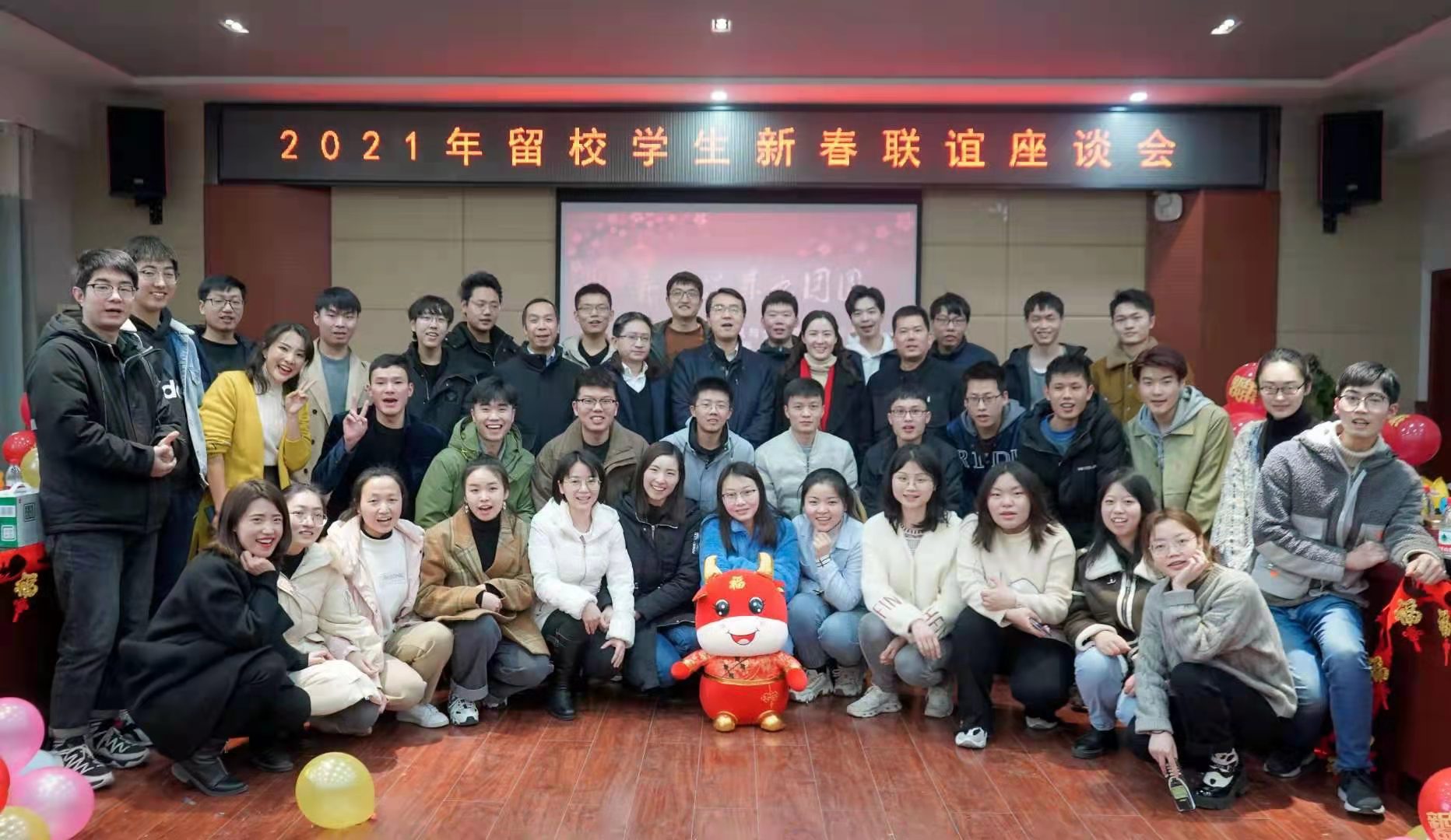 发布时间: 2021-02-10 20:28:09 已阅读:玉鼠辞旧岁,金牛迎新春。2月9日下午,番茄社区 学番茄社区 寒假留校学生新春联谊座谈会在33教306会议室顺利举行,院党委书记张袁松,院长代方银,副书记曾鸣鸣、朱高峰,副院长赵天福,辅导员代表及研究生、本科生留校学生共40余人欢聚一堂,共庆新春佳节。活动由番茄社区 团委书记娄霞主持。