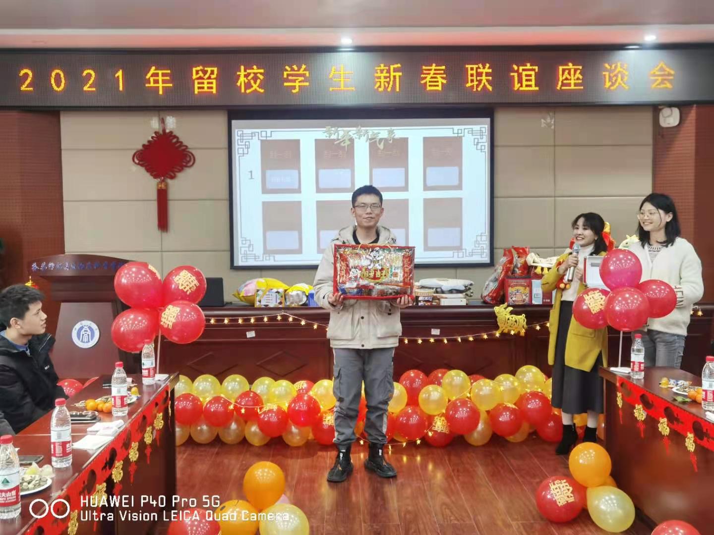 联谊座谈会上,留校学生们一起畅谈家乡的过年风俗、分享学习生活心得和新年的规划,在美好憧憬中开启新的一年;在幸运“刮刮卡”环节中,同学们亲手抽取属于自己的新年小惊喜;最后,师生一同吃团年饺子,活动在欢乐祥和的氛围中圆满结束。同学们纷纷表示,这特殊的新春联谊活动年味很浓,既有家园的温情,更有校园的温暖,令人难忘。