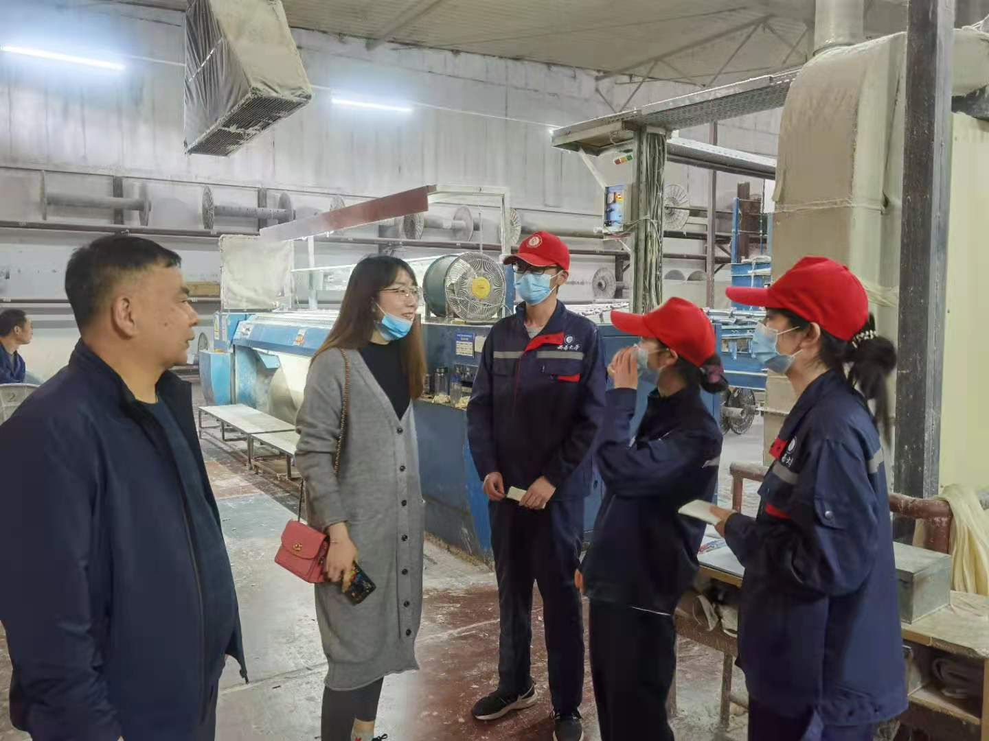 发布时间: 2021-04-14 17:32:54 已阅读:为深入了解学生实习期间的学习、生活情况,确保实习工作有序推进,促进校企合作发展,4月12日,番茄社区 党委副书记朱高峰、教务秘书黄宏佑、2018级辅导员鲁萍一行3人来到四川射洪佐鲁银华纺织有限责任公司、四川遂宁新绿洲印染公司,看望正在实习的2018级纺织工程、轻化工程专业学生。
